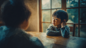 周囲の人の声がうまく届かず、話しかけられていても別の方向を向いてしまうASDの子どもの様子を描いたイメージです。注意の向けづらさや感覚処理の特性を、水彩調の穏やかなポリゴン表現で静かに描写しています。 サイズ:728 × […]