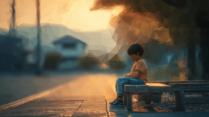 外部からの刺激や不安感を和らげるため、自宅の静かな隅で一人座り込み、自分の世界に意識を向けているASDの子どもの姿を描いたイメージです。安心できる空間で心を整えようとする様子を、穏やかな水彩ポリゴンで表現しています。 サ […]
