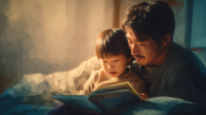 日本人の父親が子供を寝室で添い寝しながら優しく寝かしつける様子。安心感と親子の愛情が表情や仕草に現れています。 サイズ:728 × 408px解像度:72ppi生 成:Midjourney(Pro Plan)関連語:親子 […]