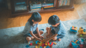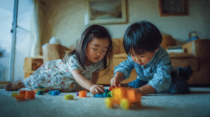 日本人の兄弟姉妹がリビングでおもちゃ遊びを楽しんでいる様子。笑顔と遊びに集中する表情から楽しい雰囲気が伝わります。 サイズ:728 × 408px解像度:72ppi生 成:Midjourney(Pro Plan)関連語: […]