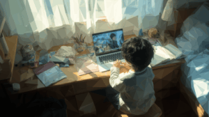 オンラインのビデオ通話で塾講師とコミュニケーションをとっている子どもの様子。授業以外にも試験対策や今後の進路についても相談しています。 サイズ:728 × 408px解像度:72ppi生 成:Midjourney(Pro […]