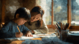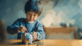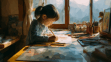 いじめ被害に悩む男子小中学生の水彩ポリゴン