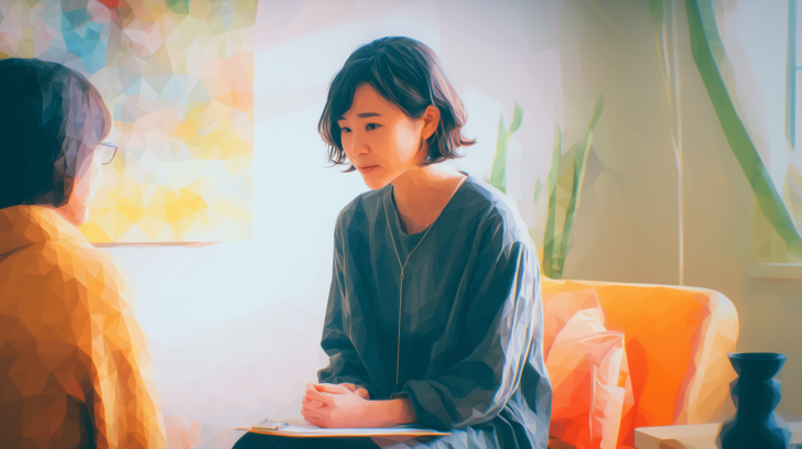 保護者と進路相談する教師の水彩ポリゴン
