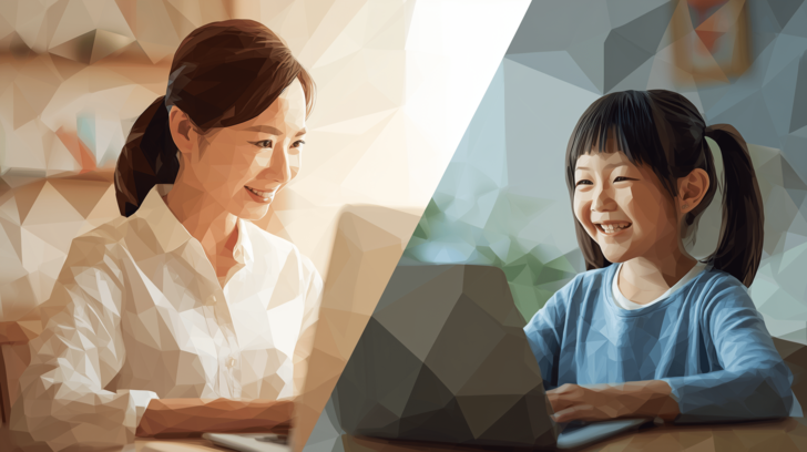 塾講師とオンラインでコミュニケーションしている水彩ポリゴン