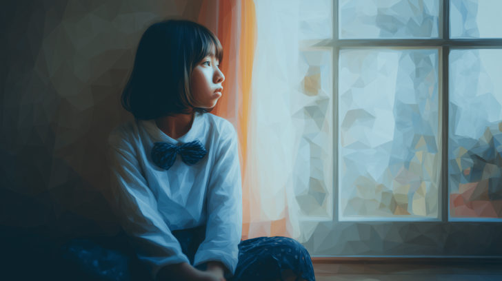 学校でのトラブルに悩む女子中学生の水彩ポリゴン