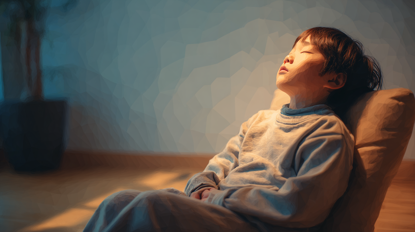 日本人の子どもが療育室で安心して座っている様子。