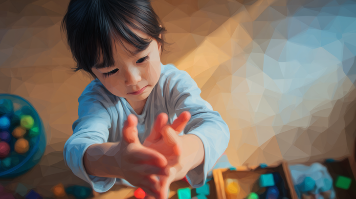 日本人の子どもが療育室で手遊びを楽しむ様子。