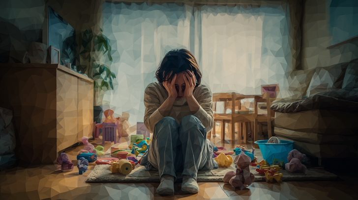 うつ ストレス ワンオペ 子育て 気持ち 水彩ポリゴン 泣く 涙 疲労 疲弊 育児 諦め 限界