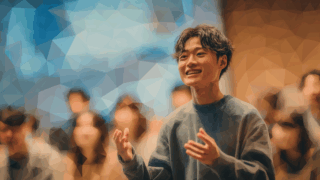 キャリアと社会 学生起業で事業アイデアをプレゼン中の水彩ポリゴン