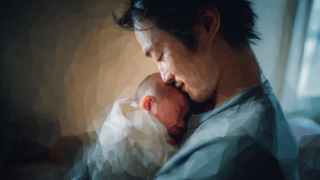 新着の水彩ポリゴン画像 寝室で子どもを寝かしつける父親の水彩ポリゴン