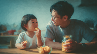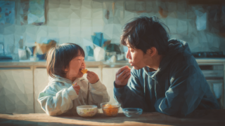 日本人の子どもが母親と一緒にキッチンでおやつを楽しむ様子。笑顔と会話のやり取りが楽しい雰囲気を作っています。サイズ:728 × 408px解像度:72ppi生 成:Midjourney(Pro Plan)関連語:親子、育児、母親、子ども、日...
