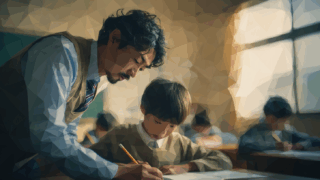 授業で生徒に教える教師の水彩ポリゴン